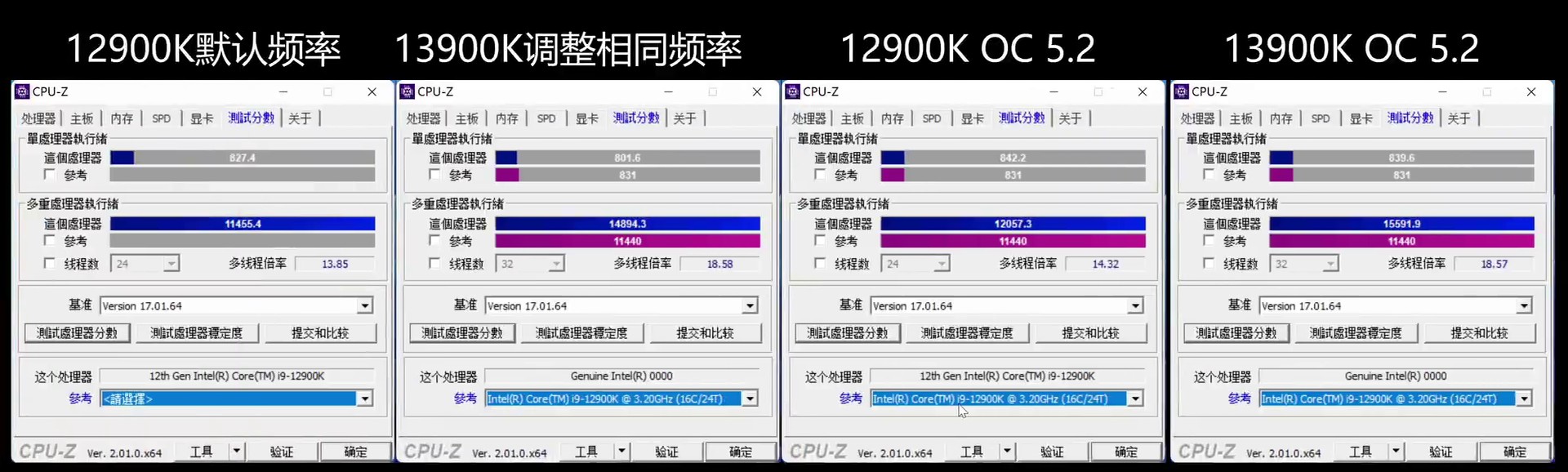 Después de que el analista haya acelerado los núcleos P del Core i9-13900K y del Core i9-12900K a 5,2 GHz, las puntuaciones de los dos chips en el benchmark de un solo núcleo son prácticamente idénticas. Por otro lado, la CPU Raptor Lake ganó un 29% de ventaja sobre el chip Alder Lake.