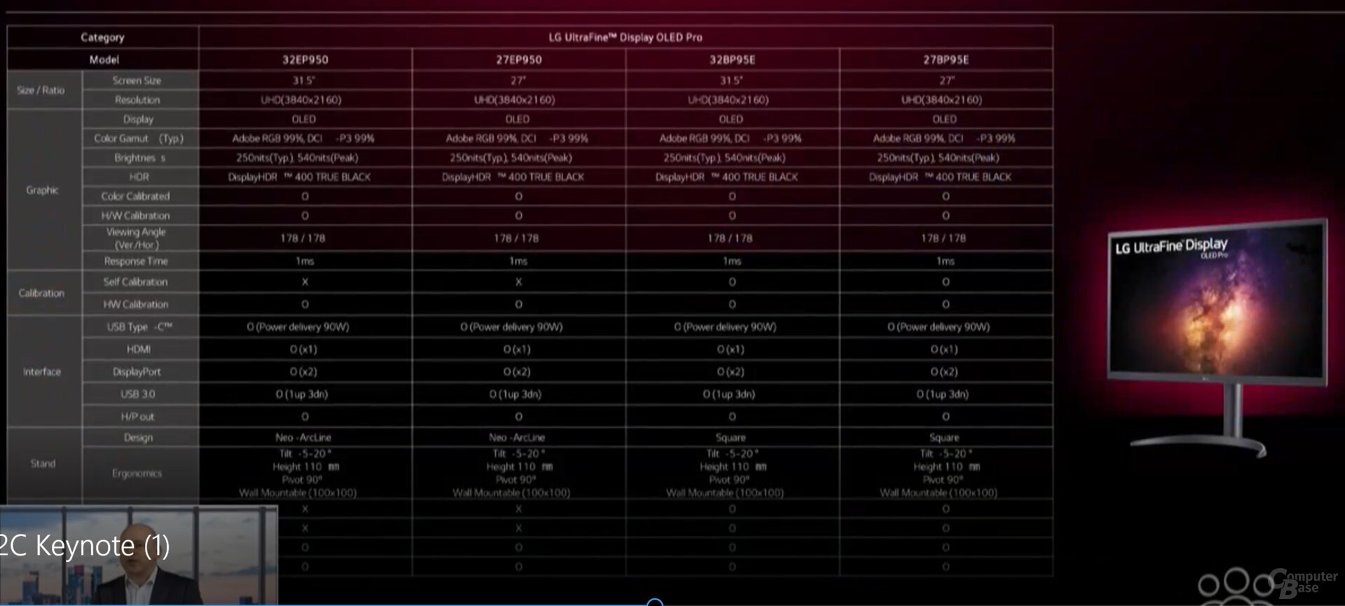 El 32EP950 también es sólo un panel de 60 Hz, a pesar de que LG vende los OLED de 120 Hz en sus líneas de TV BX y CX. Según la compañía, el 32EP950 ofrece una profundidad de color de 10 bits, tiempos de respuesta de gris a gris de 1 ms y una relación de contraste de 1.000.000:1. Además, LG ha certificado el monitor como DisplayHDR 400 True Black y afirma que cubre el 99% de los espacios de color AdobeRGB y DCI-P3. LG ha equipado el monitor con un puerto USB Type-C que puede recargar dispositivos hasta 90 W también mediante USB Power Delivery, junto con dos conexiones DisplayPort, una HDMI y tres puertos USB Type-A.