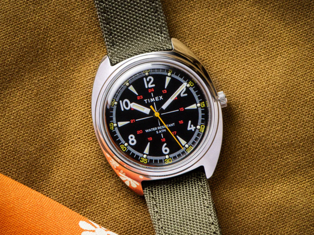 Timex y Bespoke Post han vuelto a poner a la venta su reloj de campo de edición limitada, que se lanzó originalmente en abril de 2025. El reloj de cuarzo de 36 mm es esencialmente una reinterpretación del diseño Timex Viscount de los años 70 https://www.vintagetimexwatches.com/c/viscount/con una caja de acero inoxidable en forma de tonel, cristal acrílico abombado para una distorsión vintage, agujas y marcadores luminosos, números arábigos, una pista interior roja de 24 horas, marcadores de minutos amarillos y un segundero naranja. Ofrece una resistencia al agua de 50 m y se entrega con una correa de Cordura color oliva de 18 mm con forro de piel y pasadores de cierre rápido.