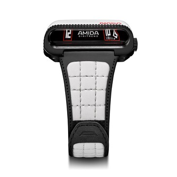 El Amida Digitrend NASA Tribute Edición Limitada es una reedición del Amida Digitrend de 1976, pero el nuevo reloj de fabricación suiza tiene un diseño fundamentalmente revisado. La caja de cerámica blanca brillante con el logotipo rojo de la NASA y el envoltorio esférico de plástico transparente son alusiones a los transbordadores espaciales del programa Apolo.