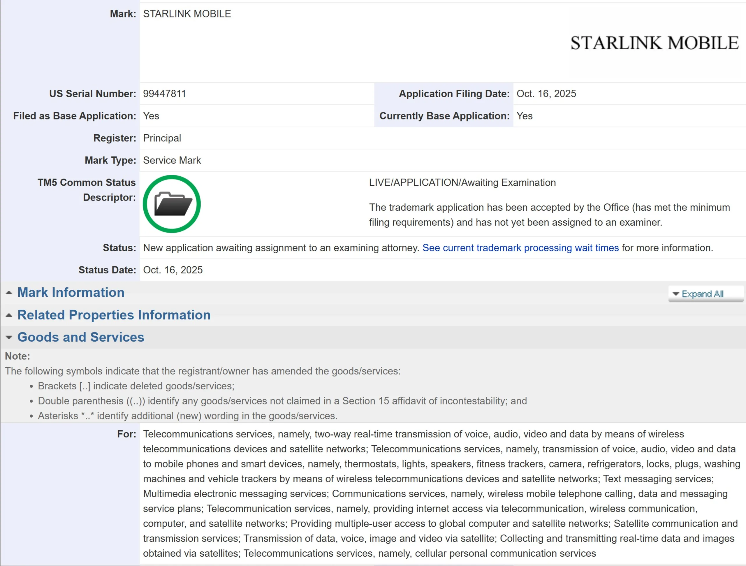 Para hacer realidad esta visión, SpaceX ha solicitado ahora el nombre de la empresa, registrando la marca Starlink Mobile en la USPTO, y el alcance de los servicios de la nueva marca suena sospechosamente como el nacimiento de una nueva compañía de telefonía móvil, sólo que transmitiendo voz y datos desde el espacio, en lugar de desde torres de telefonía terrestre: