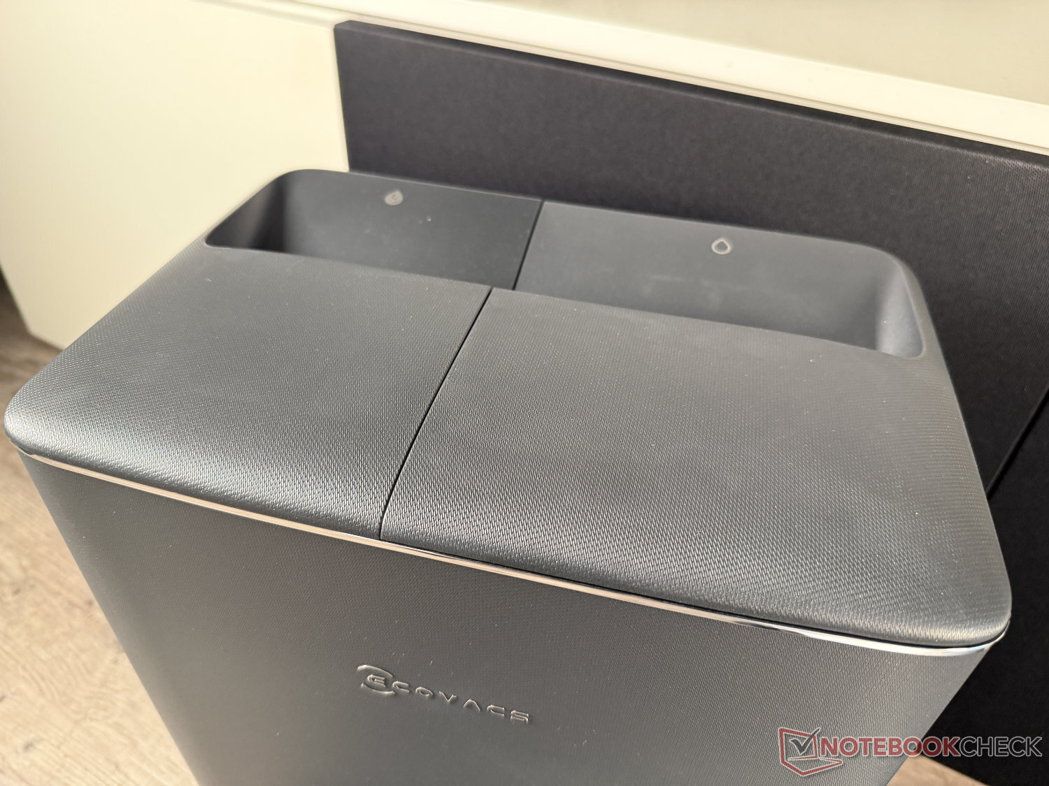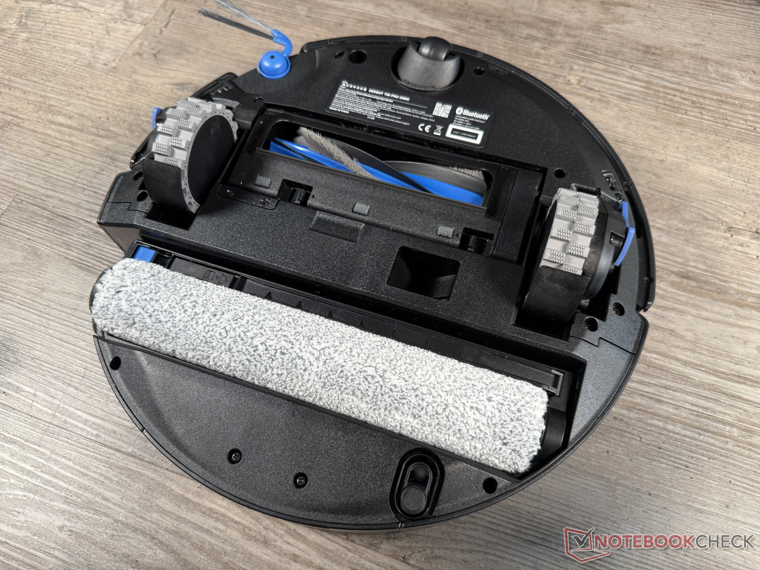 Como se ha visto recientemente en el Rodillo Mova S70, Ecovacs también ha prescindido de una torre láser en el Deebot T90 Pro Omni. Esto beneficia a la altura total, que con 95 mm no es tan plana como el robot aspirador con rodillo de mopa S70 Roller de Mova. Esto significa que este candidato de la prueba no se mete tan bien debajo de los muebles, pero es bastante más plano que el Roborock Qrevo Curv 2 Flow (disponible en Amazon), que cuenta con la misma tecnología de fregado y también se encuentra en este rango de precios.