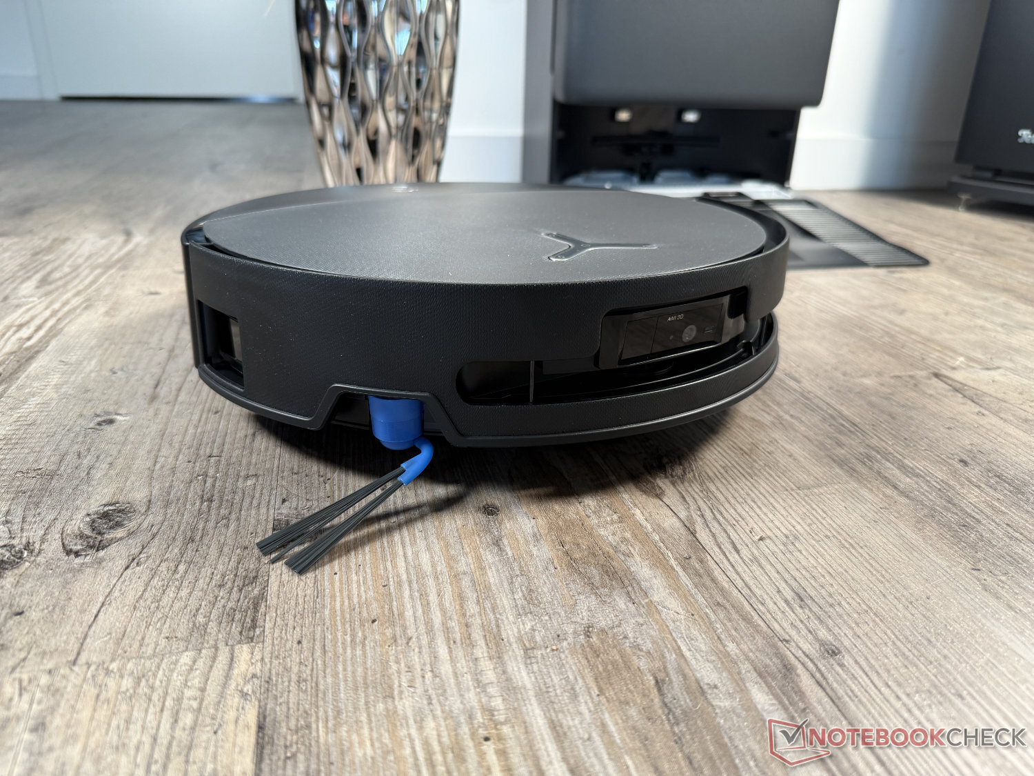 La tecnología Mini-ToF para la orientación y AIVI 3D 4.0 para la detección de obstáculos se encuentran en la parte delantera del robot aspirador, apoyados por un sensor de bordes TruEdge 3D en el lateral. Típico de esta solución, el Ecovacs Deebot T90 Pro Omni también tiene que girarse de vez en cuando al navegar para orientarse. Se echa en falta la visión de 360 grados de una torre láser clásica. No obstante, es ligeramente más rápida en el duelo de 25 metros cuadrados que la comparable Mova S70 Roller.