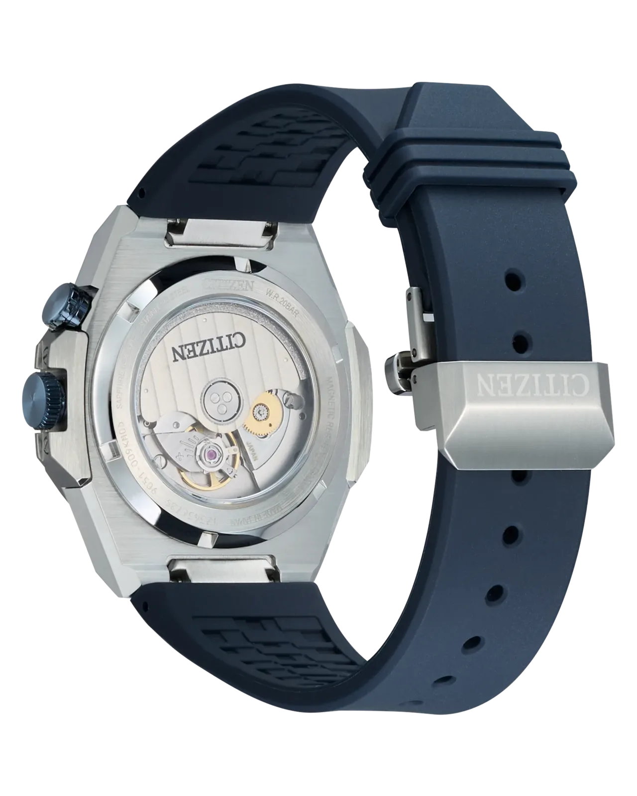 El bisel bisel interior giratorio es otra delicia visual. Puede accionarse suavemente mediante una corona específica situada en la posición de las 2 y contribuye al carácter deportivo del reloj. También dispone de una discreta ventana de fecha en la posición de las 3. En la parte trasera, una ventana de exposición de zafiro muestra el movimiento automático Calibre 9051 de la casa Citizen. Late a una suave velocidad de 28.800 vph, tiene una reserva de marcha de 42 horas y ofrece una resistencia magnética de hasta 16.000 A/m.