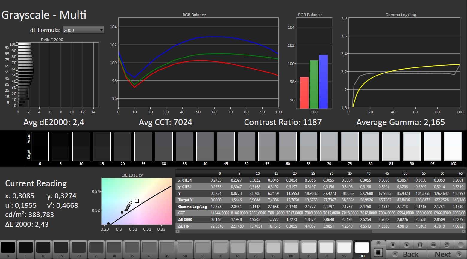 ΔE Greyscale Calman: 2.4 | ∀{0.09-98 Ø5}