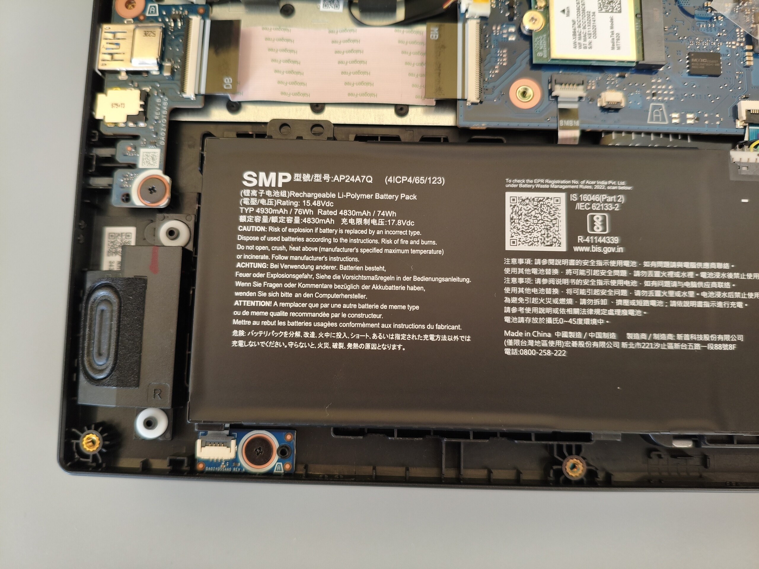 Aunque la capacidad de la batería ha aumentado significativamente de 57 a 76 Wh, su duración es peor que la de su predecesor. En nuestra prueba Wi-Fi con el brillo reducido a 150 cd/m², el dispositivo sólo consiguió unas 5,5 horas, lo que sigue siendo aceptable en comparación con la competencia.