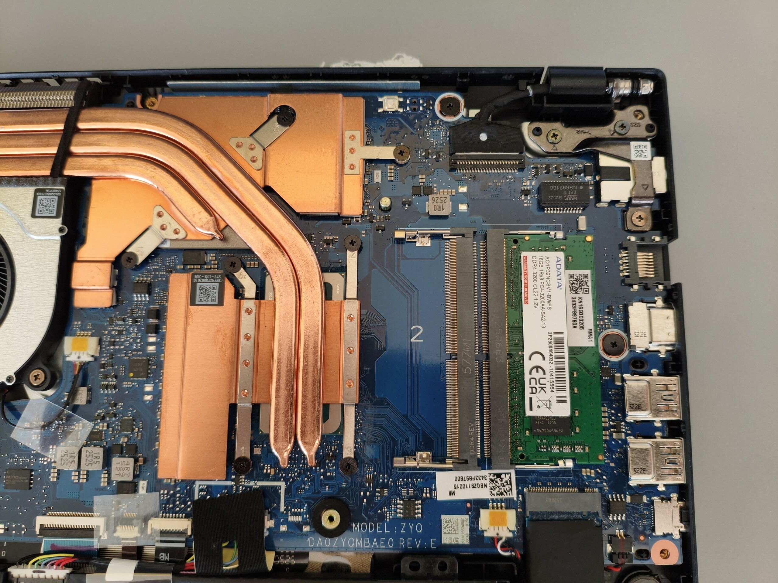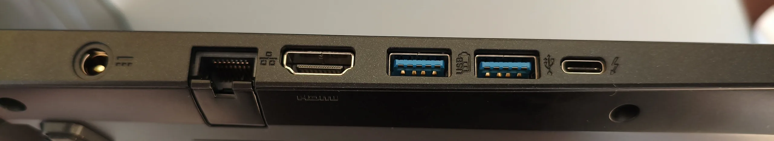 Aparte de la ausencia de un lector de tarjetas, la selección de puertos deja poco lugar a la crítica. El puerto LAN Gigabit, la salida HDMI y la toma de audio de 3,5 mm se complementan con tres puertos USB-A y un conector Thunderbolt 4. También se incluye una ranura de bloqueo Kensington. El módulo Wi-Fi 6E ofrece un rendimiento mediocre, y la cámara web, bastante suave, produce resultados igualmente poco impresionantes. Para acceder al interior es necesario retirar 11 tornillos Phillips. Encontrará imágenes del interior más abajo.