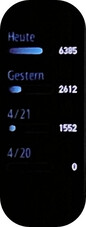 La aplicación sincroniza los datos recogidos a través del servidor del fabricante y presenta los análisis en un panel diario. En las páginas de detalles, puedes retroceder más y mirar períodos de tiempo más largos, como aquí para el número de pasos.