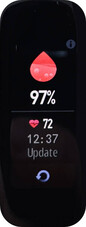 La Banda 5 mide la frecuencia cardiaca a demanda cada minuto durante las 24 horas del día y emite un aviso cuando el pulso supera una frecuencia previamente definida. Los intervalos alternativos para la medición son 5, 10 y 30 minutos. No es posible establecer un límite de pulso inferior. Xiaomi tampoco proporciona una advertencia por un pulso demasiado bajo. Ambos infieren los efectos del estrés a partir de la variabilidad de la frecuencia cardíaca. La saturación de oxígeno se mide manualmente.