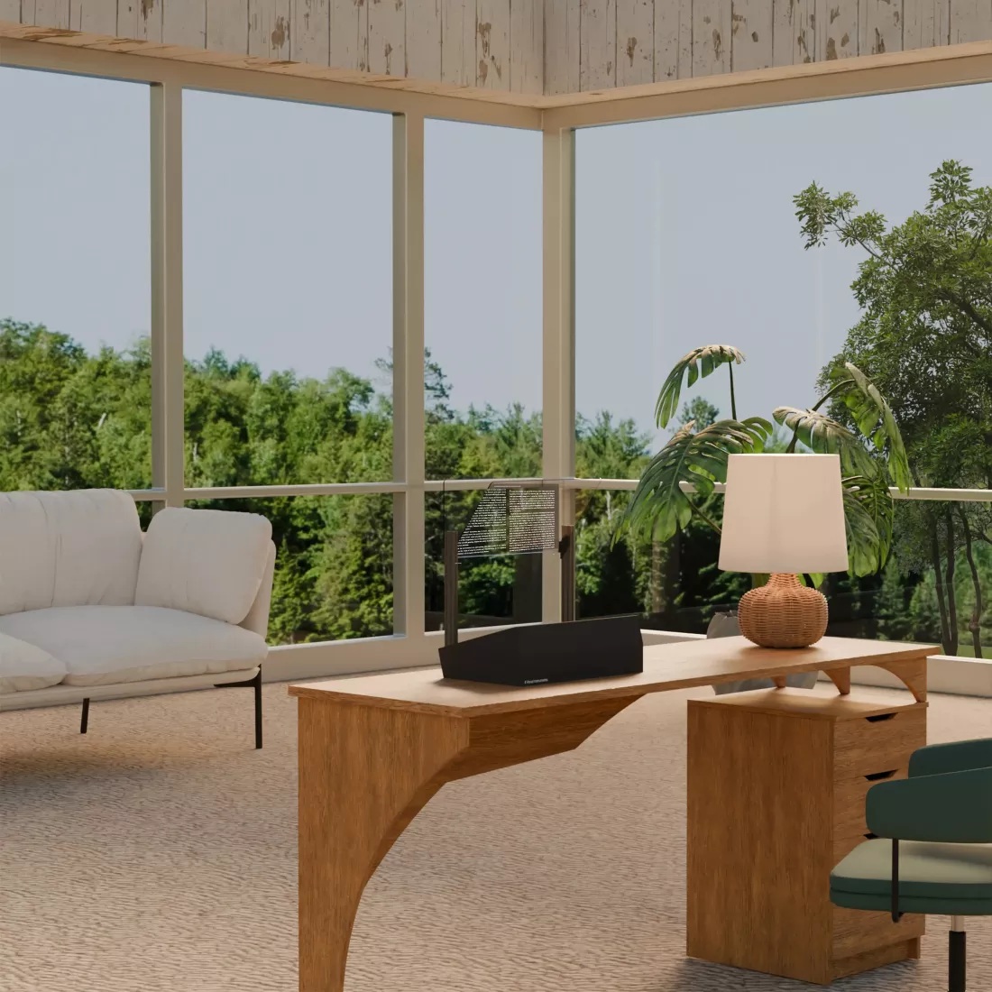 El monitor, bautizado como Phantom, utiliza la proyección óptica en lugar de los píxeles semitransparentes que se encuentran en la mayoría de los demás conceptos de OLED y LCD transparentes. Hay un panel de visualización dentro de la base del Phantom que proyecta imágenes sobre un cristal con un revestimiento especial. El cristal está colocado en un ángulo alejado de la línea de visión del usuario.