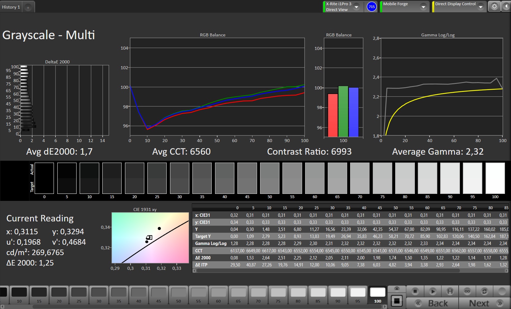 Según Apple, es posible alcanzar un brillo de hasta 3.000 nits, pero la pantalla de nuestro dispositivo de prueba alcanzó un brillo máximo de 2.344 cd/m², que sigue siendo notablemente brillante.