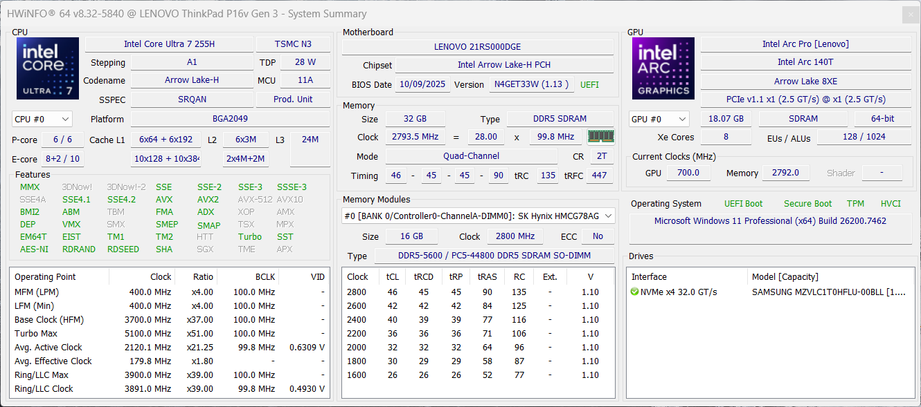 | Lenovo ThinkPad P1 Gen 8 (Toshiba Exceria Pro SDXC 64 GB UHS-II) | |