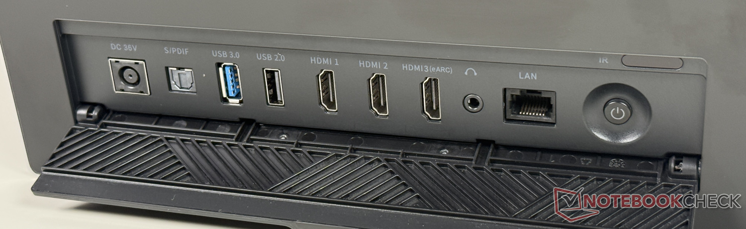 El VisionMaster Max ofrece una serie de conexiones para conectar soluciones de audio externas. Además de eARC en el tercer puerto HDMI, S/PDIF es otra interfaz de audio digital. Una conexión jack de 3,5 mm para auriculares, por ejemplo, completa la armada de conexiones en caso de que éstos no se conecten o no puedan conectarse de forma inalámbrica a través de Bluetooth 5.2.