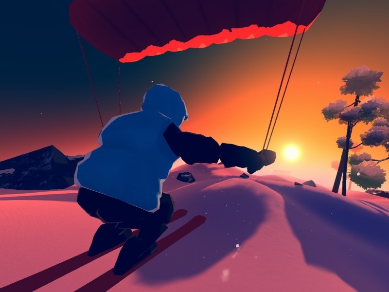 Una de las cosas que más me gustan de SNØ es que realmente no hay ningún tipo de ayuda manual. Después de mostrarte los controles cuando empiezas en la cima de la montaña, realmente te deja que descubras las cosas por ti mismo. Te dice cómo desplegar tu parapente, qué botón girar/trucar y cómo destrozar la nieve, y eso es todo. Todas las técnicas de puntuación se dejan para que el jugador las descubra, así como la forma de navegar por terrenos más complicados y difíciles a medida que se generan.