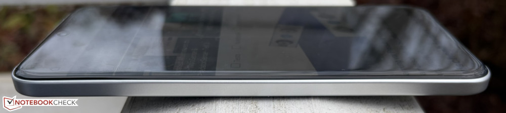 El cristal de la pantalla, que tiene una película protectora adicional, es de Gorilla Glass Victus 2 y está ligeramente redondeado en las esquinas y los bordes. Junto con los bordes de la pantalla muy estrechos en todos los lados, esto confiere al teléfono Xiaomi un aspecto de gran calidad. Un marco de aluminio conecta la parte delantera y trasera y el Poco M8 Pro 5G también es resistente al polvo y al agua gracias a su certificación IP68.