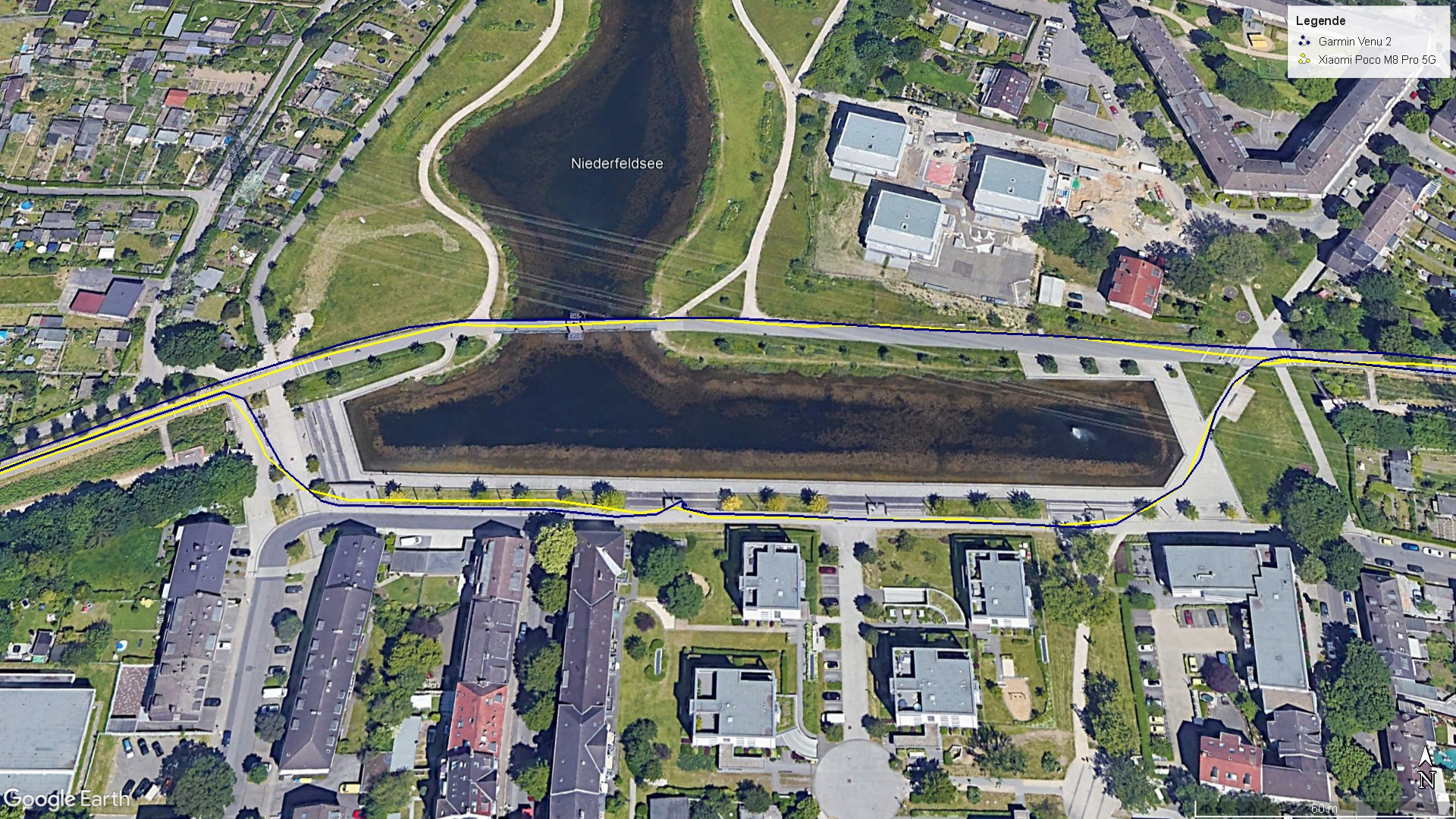 El Poco M8 Pro 5G es muy adecuado como dispositivo de navegación. Es compatible con todos los servicios de navegación por satélite habituales y, salvo pequeñas imprecisiones, nos guió hasta nuestro destino con tanta precisión como el dispositivo de referencia, el smartwatch de fitness Garmin Venu 2.