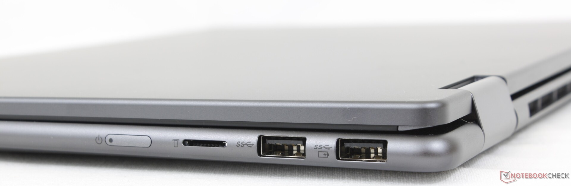 La posición de los puertos ha cambiado para estar menos amontonados a lo largo del borde izquierdo. Las opciones integradas son mejores que en el Galaxy Book3 Pro 360 16 o el Spectre x360 16, pero el Inspiron 16 7620 2 en 1 tiene una ligera ventaja, ya que incluye todo lo del Lenovo más un lector SD de tamaño completo.
