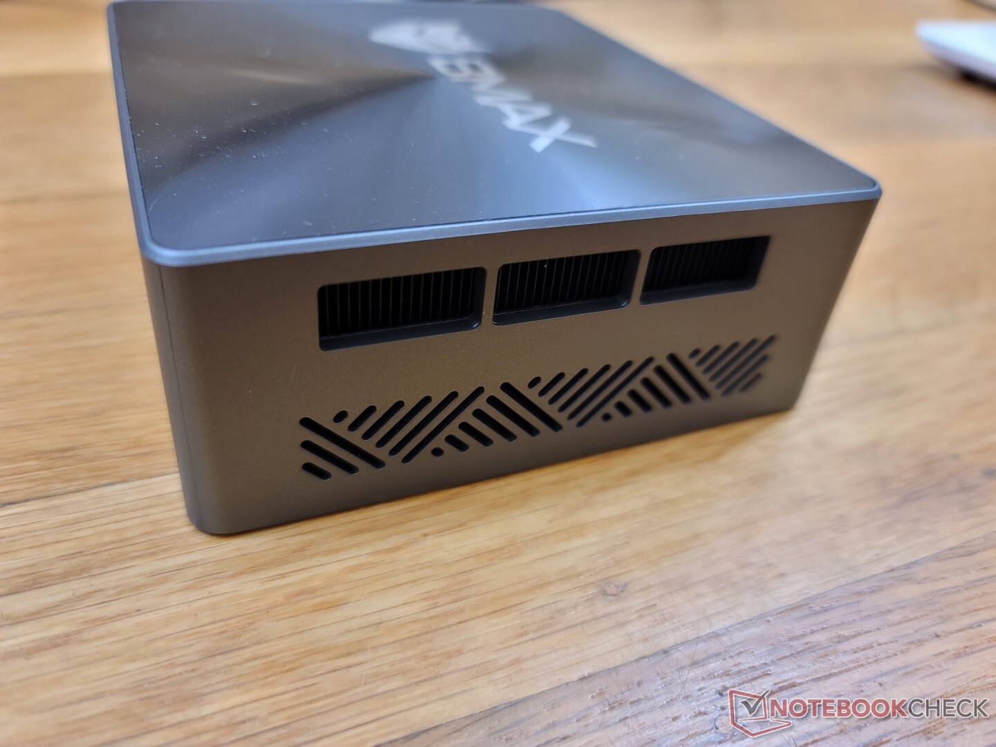 Las temperaturas de la superficie nunca son incómodas. El punto caliente de la parte superior, por ejemplo, sólo alcanza unos 33 C cuando se somete a un alto estrés de procesamiento. El calor se escapa por el lado derecho del chasis, a diferencia del NUC de Intel, donde el calor se escapa por la parte trasera