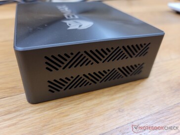 La carcasa es ligeramente más gruesa que la del Intel NUC11TNKi5 para ser casi idéntica a la del Beelink SEi8. La rigidez es fuerte alrededor de los bordes y la parte inferior ya que estas áreas son de metal mientras que la parte superior es de plástico más barato y más susceptible a la deformación. Sigue siendo un diseño fuerte sin fallos evidentes aunque no sea tan pesado como un Intel NUC.