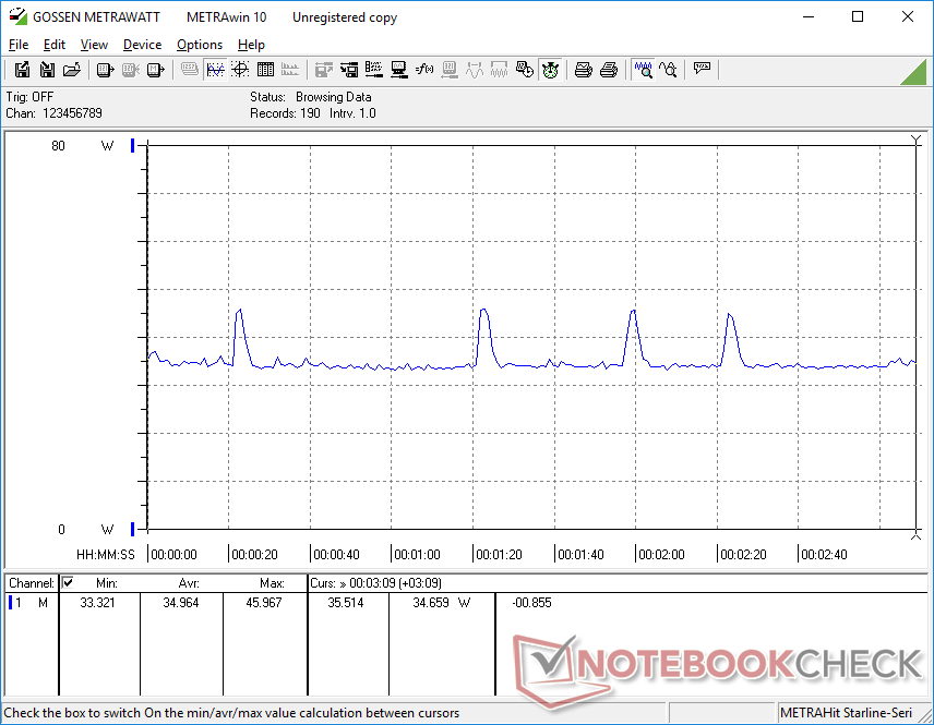 El uso de la batería limita el rendimiento de la CPU y la GPU. Una prueba de Fire Strike con baterías arrojaba unas puntuaciones de Física y Gráficos de 11614 y 3210 puntos, respectivamente, en comparación con los 15185 y 3887 puntos de la red eléctrica.