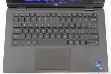 El tamaño del clickpad no ha cambiado respecto al anterior Latitude 7310, con unos 10 x 6,1 cm. Sin embargo, nos gustaría que fuera más alto, ya que el movimiento vertical del cursor y el desplazamiento multitáctil pueden resultar un poco estrechos. Las teclas integradas del ratón también son más suaves de lo que nos gustaría y se vuelven cansadas de pulsar después de un rato.