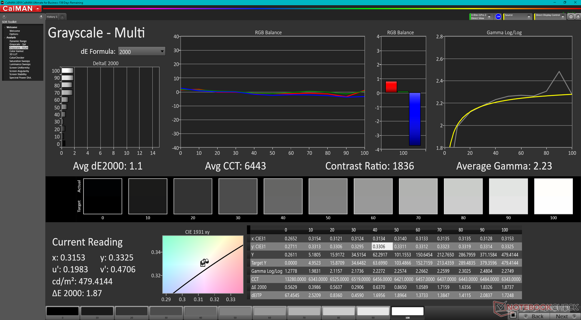 ΔE Greyscale Calman: 2.3 | ∀{0.09-98 Ø5}