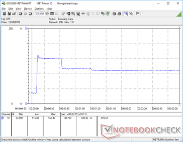 El adaptador de CA de 230 W es relativamente pequeño (~17 x 7 x 2,5 cm) en comparación con la mayoría de adaptadores de potencia equivalente para facilitar su transporte. Podemos registrar un consumo máximo temporal de 228 W cuando tanto la CPU como la GPU están al 100% de utilización.
