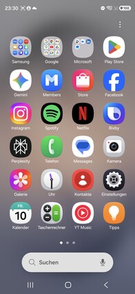 Como en años anteriores, las aplicaciones de terceros como Spotify, Netflix, Facebook y Microsoft están preinstaladas, pero pueden eliminarse por completo. Perplexity es una nueva incorporación, y también se incluye Galaxy AI, esta vez mejorada con nuevas funciones como "Now Nudge" Una característica positiva es la opción de realizar los cálculos de la IA exclusiva y localmente en el dispositivo. Sin embargo, esto puede suponer una reducción de la velocidad y la funcionalidad.
