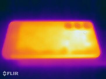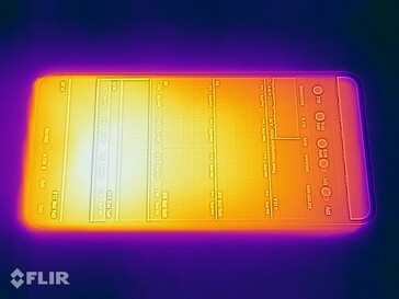 (-) La temperatura máxima en la parte superior es de 45.5 °C / 114 F, frente a la media de 35.2 °C / 95 F, que oscila entre 21.9 y 247 °C para la clase Smartphone.