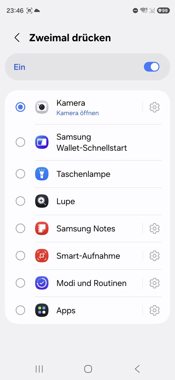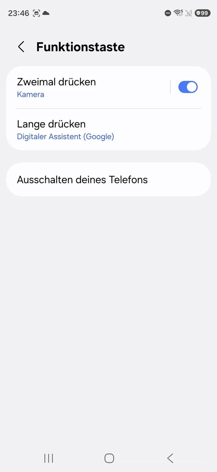 El botón de encendido es en realidad más bien un botón de función que no sólo apaga y enciende el smartphone, sino que también puede iniciar directamente el asistente configurado o una aplicación específica. También se incluye un modo de uso con una sola mano.