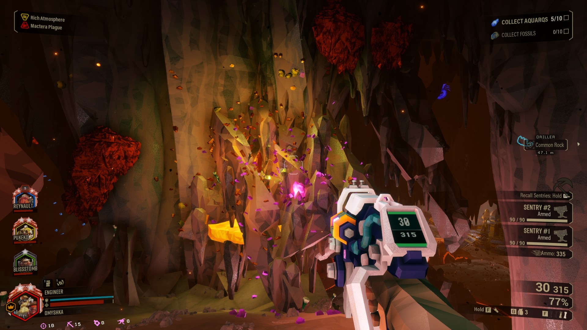El título cuenta con cuatro clases distintas -explorador, artillero, ingeniero y perforador-, cada una con un papel claramente definido y herramientas únicas que se complementan entre sí. El entorno, totalmente destructible, permite a los jugadores cavar túneles, crear atajos o controlar tácticamente espacios reducidos durante el combate. Las misiones giran en torno a reunir recursos, completar objetivos y defenderse de oleadas de criaturas alienígenas. A medida que los jugadores progresan, desbloquean nuevas armas, mejoras y recompensas cosméticas para personalizar aún más su equipamiento.