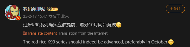 El Redmi K se limita al mercado chino. Sin embargo, Xiaomi renombra muchos teléfonos de la serie Redmi K para los mercados internacionales. Por ejemplo, el Redmi K70 fue renombrado como el Poco F6 Proy, por lo tanto, el K90 podría lanzarse como Poco F8 Pro en el mercado global.