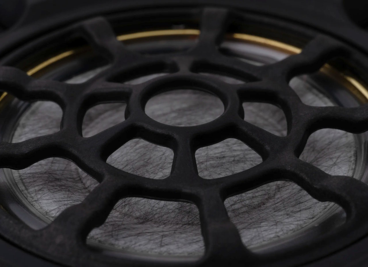 La empresa afirma que lo ha conseguido utilizando almohadillas de espuma con memoria extragruesas de 30 mm (1,18 pulg.) junto con un transductor de baja distorsión y una estructura de baja resonancia. El transductor utiliza diafragmas fabricados con papel washi japonés infundido con carbono para conseguir una rigidez ligera. Detrás del transductor, un difusor de sonido especial con finas nervaduras anula los reflejos a la vez que reduce la resonancia, según la empresa.