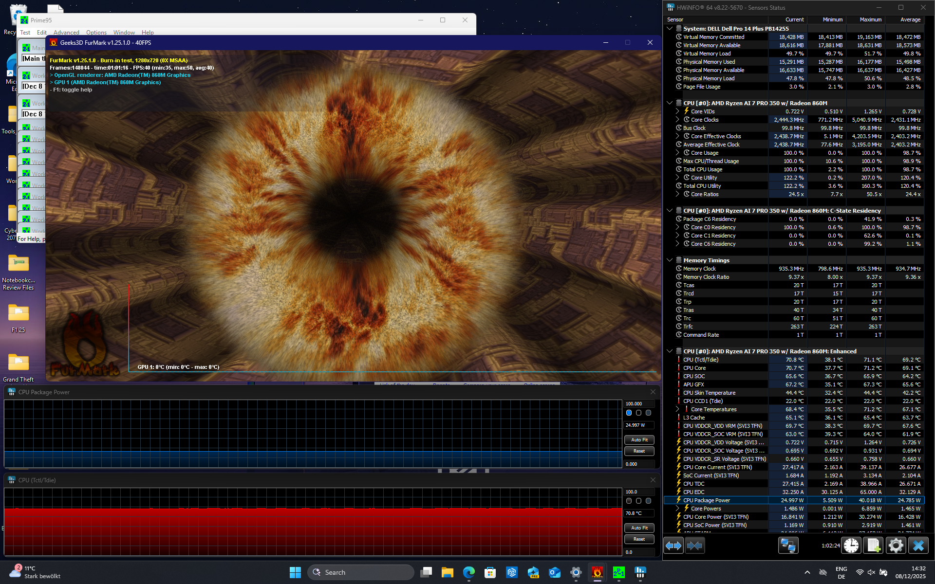 Incluso después de una hora, el portátil Dell Pro puede mantener su consumo de energía de la CPU en 25 W, por lo que no hay absolutamente ninguna ralentización.
