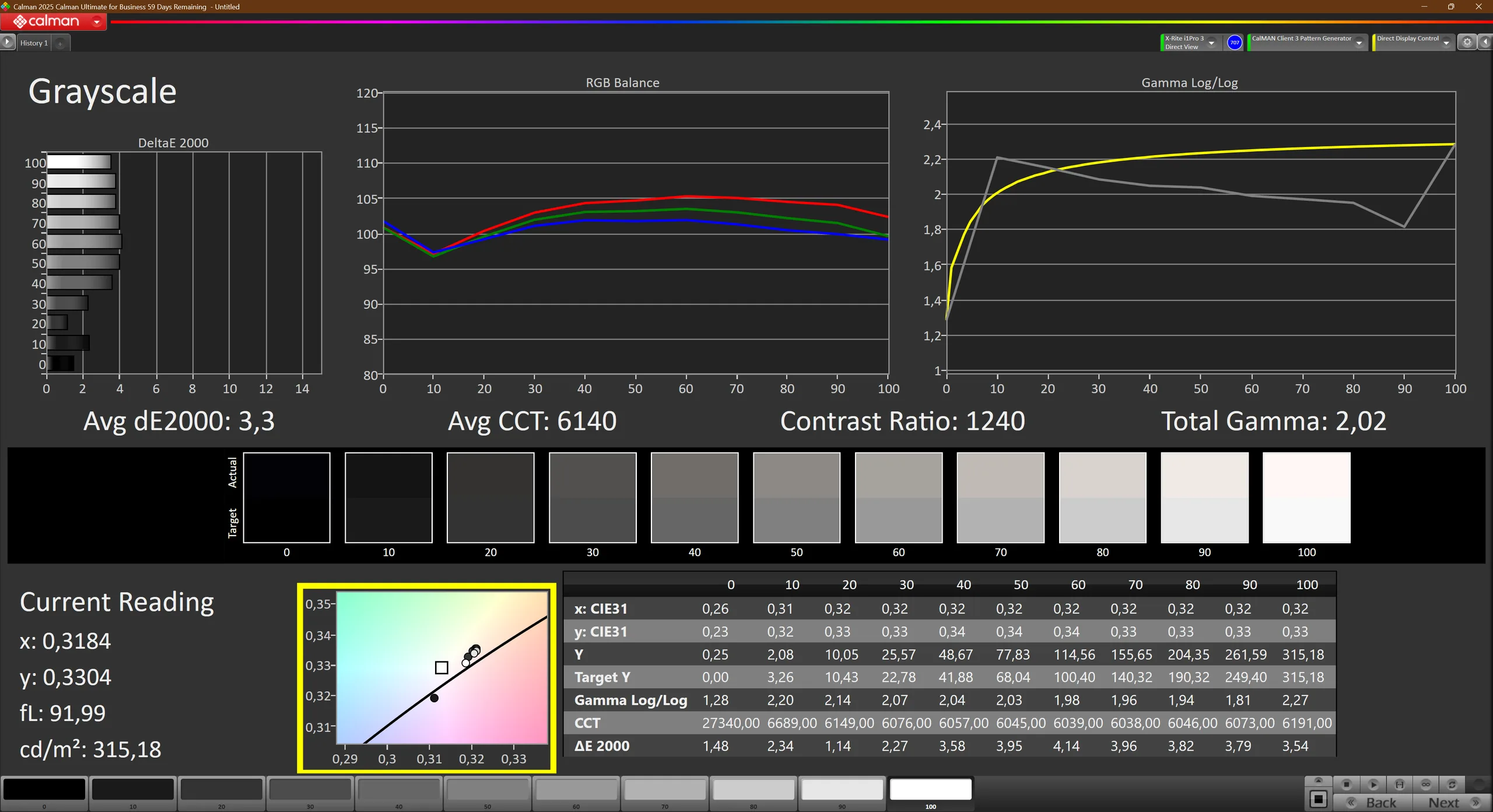 ΔE Greyscale Calman: 3.3 | ∀{0.09-98 Ø5}