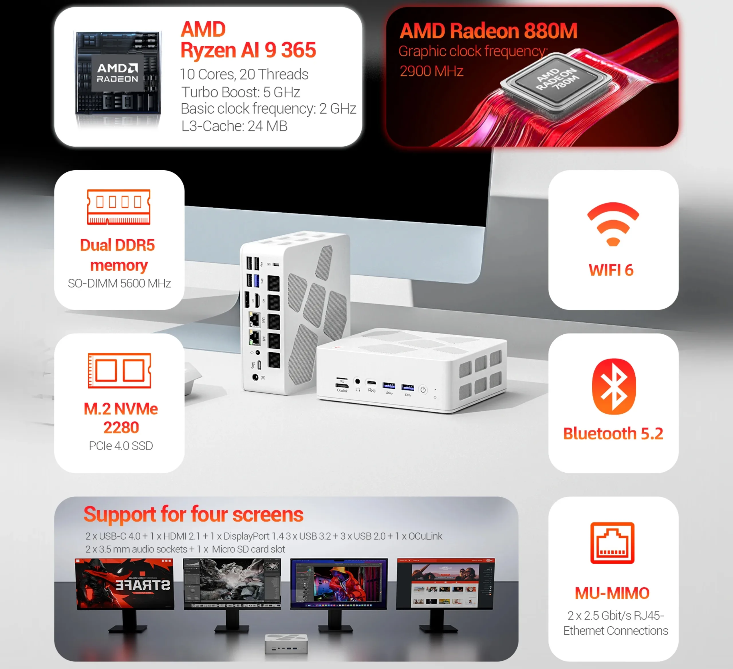 Firebat ha presentado una versión renovada del mini PC A8. Esta nueva configuración del sistema cuenta con una APU capaz de la línea AMD Strix Point. Para ser específicos, lleva la Ryzen AI 9 365, que viene con una configuración de 10 núcleos.
