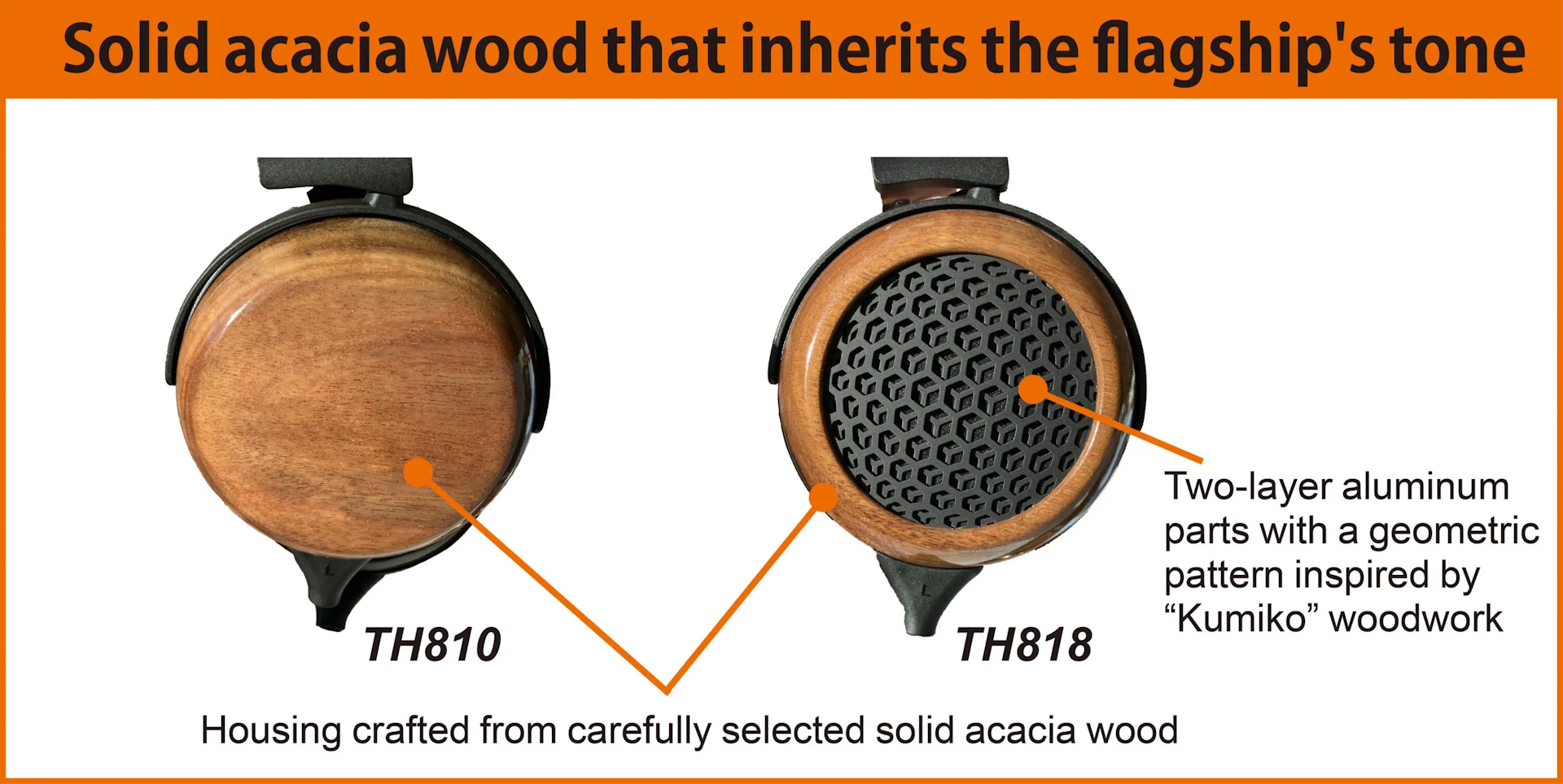 Fostex ha anunciado los próximos auriculares over-ear premium TH810 closed-back y TH818 open-back. Ambos utilizan los mismos componentes que los auriculares insignia TH910 y TH919 anunciados anteriormente, pero emplean carcasas de madera de acacia más asequibles en lugar de carcasas de arce lacado japonés decoradas con motivos de lámina de plata ahumada con azufre.