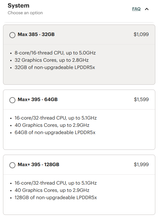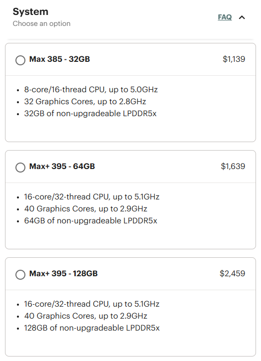 En una entrada de blog, Framework subraya que los aumentos son únicamente para compensar el aumento de los costes de producción. En particular, las configuraciones de gama baja con 32 GB o 64 GB de RAM sólo experimentaron una modesta subida de 40 dólares cada una. El modelo con un Ryzen AI Max 385 y 32 GB de RAM se vende ahora por 1.139 dólares, mientras que la variante de gama más alta con un Ryzen AI Max+ 395 y 64 GB de RAM tiene un precio de 1.639 dólares tras el ajuste