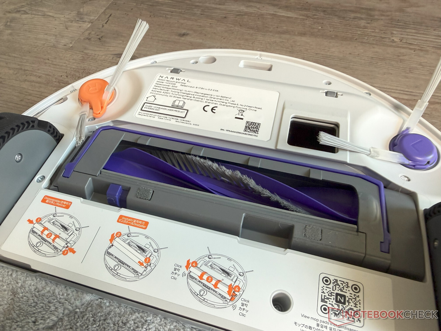 La Narwal Flow también está equipada con dos cepillos laterales. Aunque éstos no son extensibles, su diseño especial debería llegar hasta las esquinas. También dispone de todo tipo de funciones de inteligencia artificial para la adaptación inteligente de la limpieza.