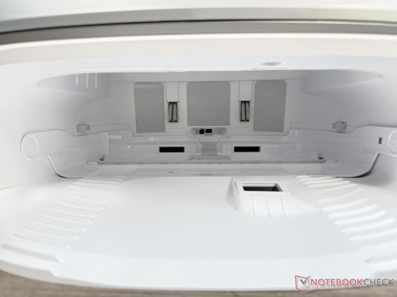 Una característica positiva es que la bandeja de limpieza de la mopa es extraíble. También son prácticas las asas laterales para levantar la estación redondeadas y de diseño elegante. Sin embargo, nos ha gustado menos que no haya ningún pasacables en la parte trasera para el cable de alimentación, más bien corto.