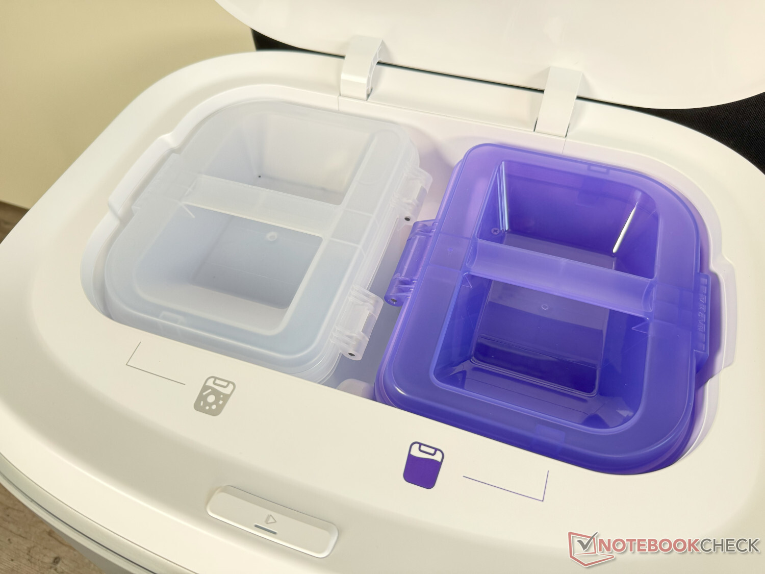 La estación de limpieza incluida ya no tiene una pantalla integrada, como ocurría anteriormente con los modelos Narwal Freo. Sin embargo, hay un botón integrado para poner en marcha el robot directamente. Además de la extracción de polvo durante un máximo de 120 días (según el fabricante), la estación ofrece una limpieza con paños de agua caliente adaptada a la IA con agua templada a 60°C. A continuación, se seca con aire caliente a 45°C. La estación también dispone de una función de autolimpieza con agua caliente y un filtro de limpieza reemplazable. El detergente puede verterse directamente en el depósito de agua, lo que resulta algo menos cómodo.
