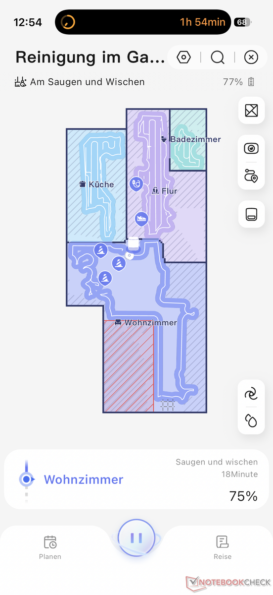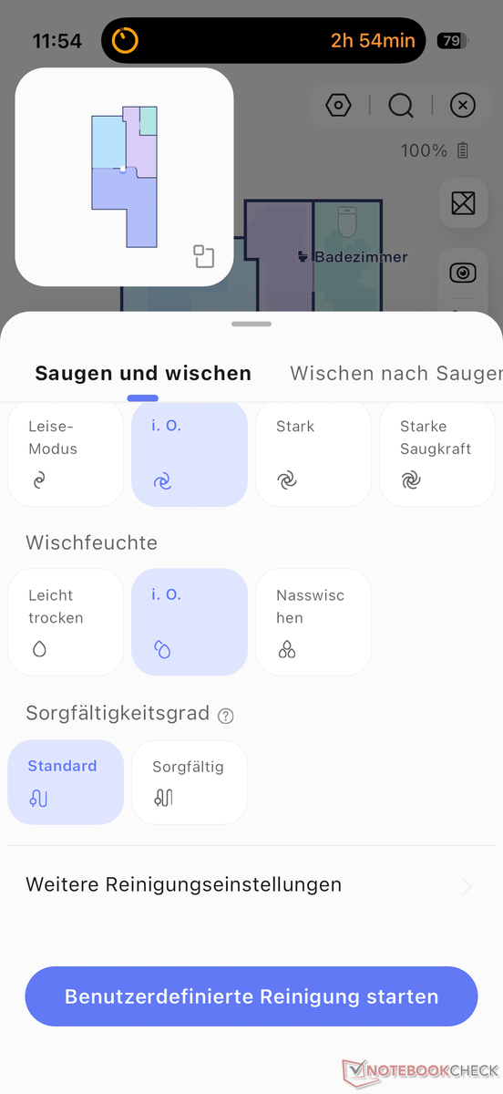 En general, la aplicación Narwal no nos gusta tanto como la de otros fabricantes. En el lado negativo, observamos que la aplicación tarda a veces unos instantes en cargarse. En el lado positivo, sin embargo, la localización ha mejorado significativamente, mientras que a veces era horrible en modelos anteriores cuando se configuraba el idioma alemán. Sin embargo, sigue sin ser perfecta. También sigue faltando la compatibilidad con el mate, pero se añadirá más adelante.