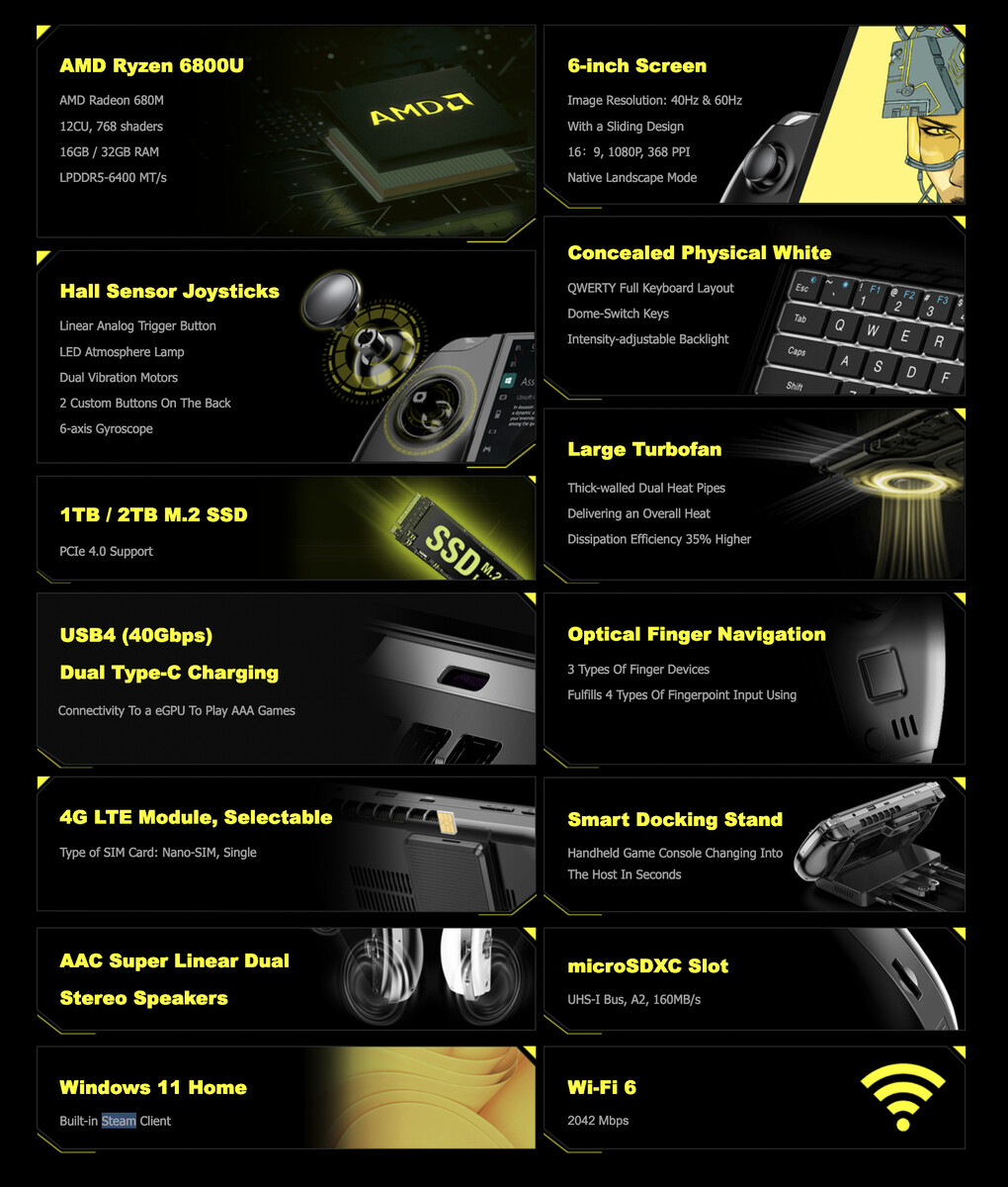 En cuanto al Win 4, GPD afirma que el dispositivo será compatible con Windows 11 Home (64 bits), así como con Steam OS. Como era de esperar, el dispositivo portátil tiene una pantalla IPS de 6 pulgadas que funciona a 1.920 x 1.080 píxeles con soporte de atenuación DC. Como referencia, la pantalla es un panel nativo apaisado, está protegida por Corning Gorilla Glass 5 y puede funcionar a 40 Hz o 60 Hz. Por cierto, el panel de 368 PPI está alimentado por la Radeon 680M y Ryzen 7 6800Uademás de una memoria RAM LPDDR5-6400, un SSD PCIe Gen 4.0 x4 y una batería de 45,62 Wh.