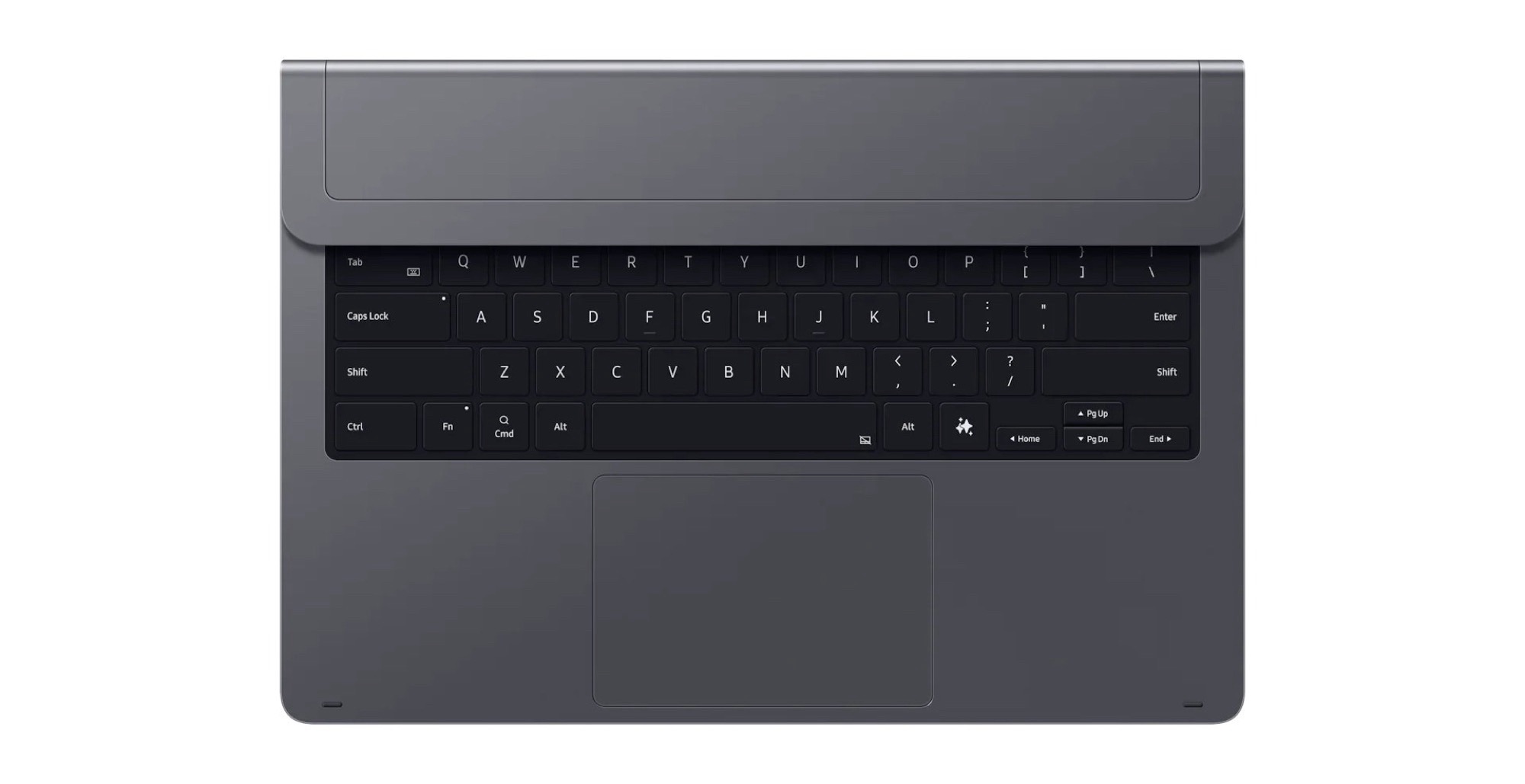 Con el teclado acoplado, la tableta puede incluso plegarse y transportarse como un portátil, mientras que la bisagra permite colocar la pantalla en un ángulo cómodo. Los datos y la alimentación se suministran a través de clavijas metálicas en la parte posterior de la tableta, por lo que no es necesario cargar el teclado por separado. El teclado Pro cuenta con un trackpad multitáctil que es un 14,6% más grande que el de la cubierta Book Keyboard de la Galaxy Tab S10 Ultra.