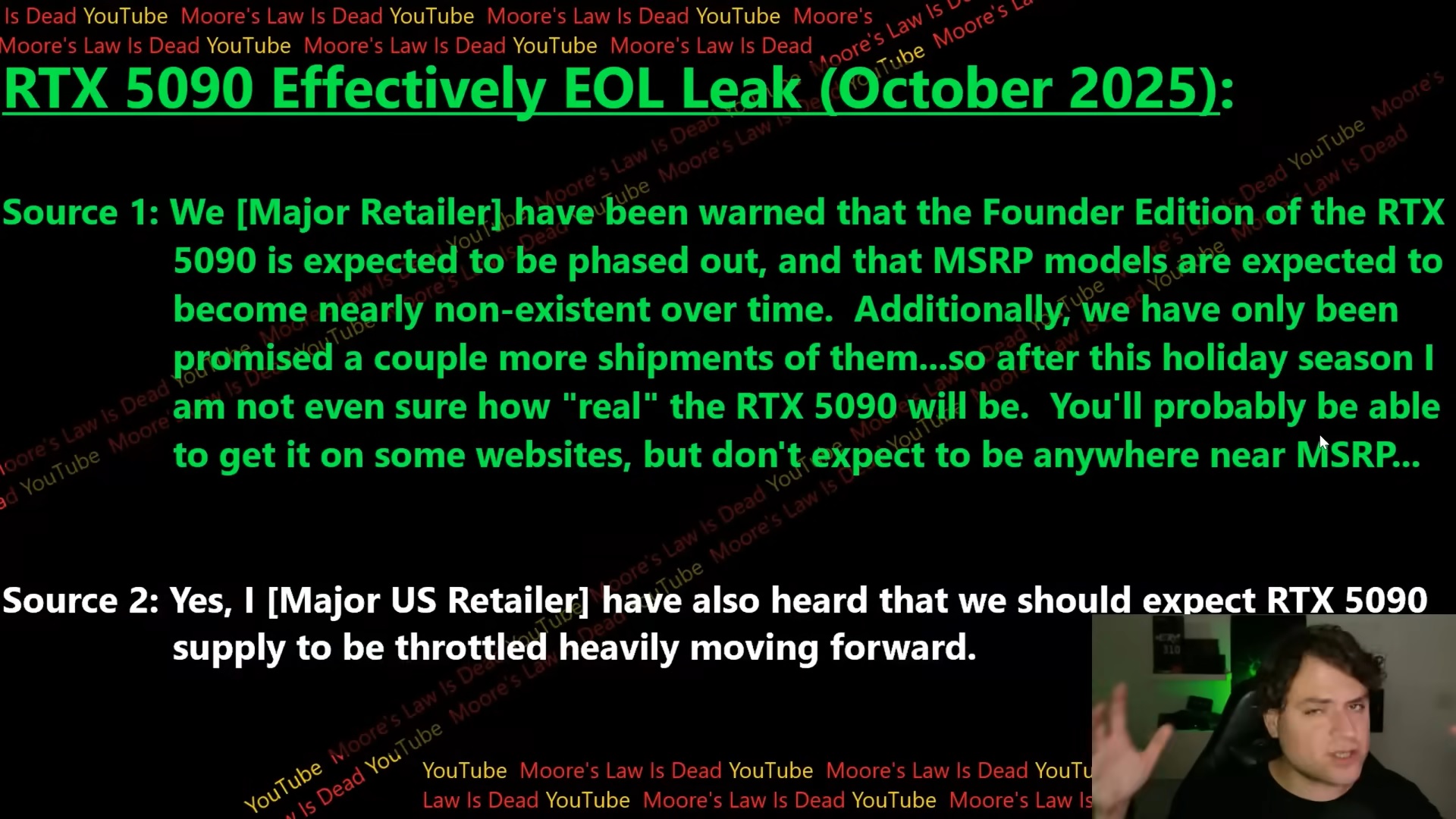 Según una fuente de MLID que trabaja en un "minorista importante", la RTX 5090 Founders Edition "se espera que se elimine gradualmente". Al parecer, el suministro de otros modelos MSRP también se está reduciendo hasta el punto de ser inexistente. La fuente advirtió que, después de la temporada de vacaciones de 2025, los modelos RTX 5090 de precio razonable, como los que se venden al por menor al precio MSRP o más cercano a éste, muy probablemente quedarán fuera de circulación.