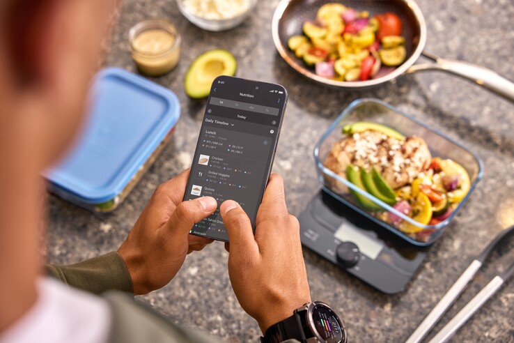 La función de seguimiento nutricional de Garmin está diseñada para facilitar el seguimiento de su dieta. Cuando consuma un alimento, sólo tiene que escanearlo con la aplicación para smartphone Garmin Connect, ya sea escaneando el código de barras o sosteniendo el propio plato delante de la cámara, que lo reconocerá mediante IA.