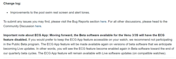 Garmin ha puesto una nueva actualización beta, versión 11.08, disponible para algunos usuarios de Venu 3 y Venu 3s. Los cambios realizados a través del software son relativamente menores, con una mejora para la actividad de natación en piscina. Según el registro de cambios, Garmin ha refrescado la pantalla de descanso y los tonos de alerta para esta actividad.