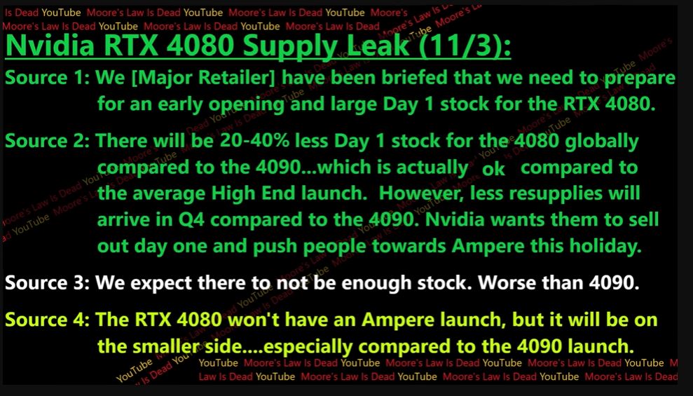 El filtrador de hardware Tom de La ley de Moore ha muerto Afirma ahora que el suministro de la RTX 4080 será muy limitado en comparación con la RTX 4090.