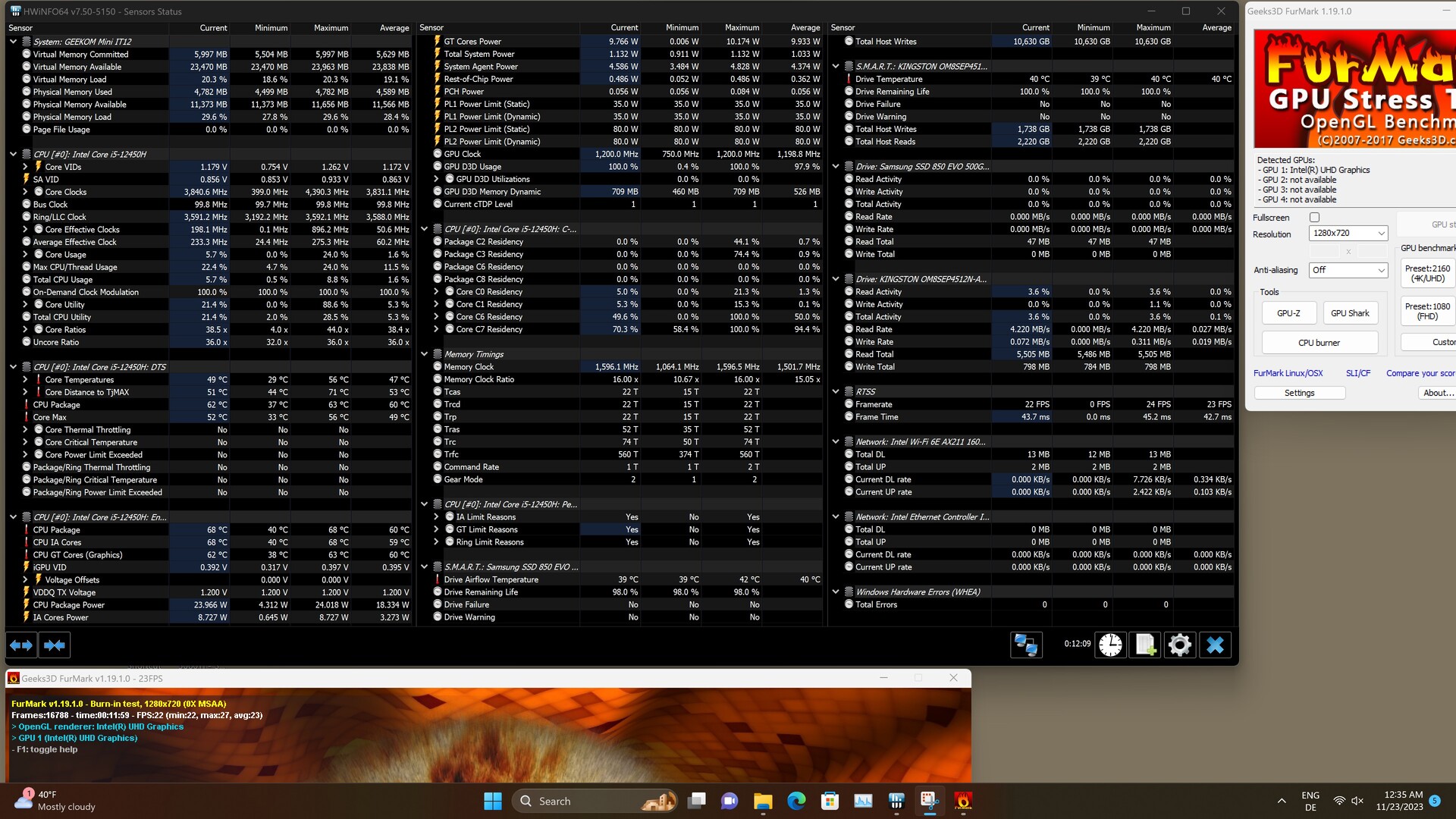 | Geekom Mini IT12 i5-12450H, UHD Graphics 64EUs | Geekom Mini IT12 i7-1260P, Iris Xe G7 96EUs | Intel NUC 13 Pro Kit NUC13ANK i7-1360P, Iris Xe G7 96EUs | Minisforum Mars Series MC560 R5 5600U, Vega 7 | Intel NUC 12 Pro Kit NUC12WSKi7 i7-1260P, Iris Xe G7 96EUs | Minisforum Venus Series UN1245 i5-12450H, UHD Graphics 64EUs | NiPoGi CK10 i5-12450H, UHD Graphics 64EUs | |