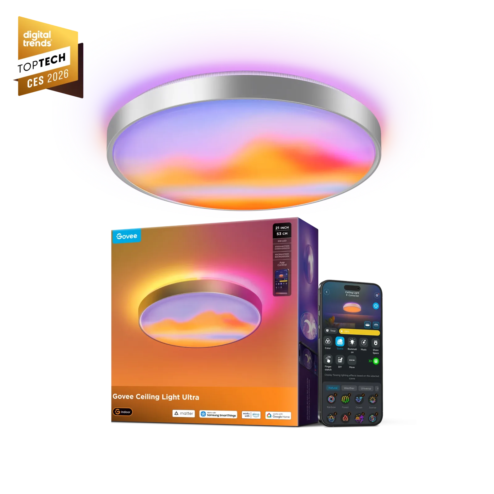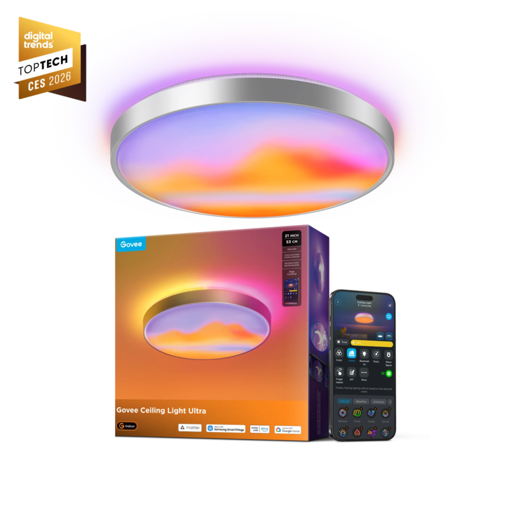 Por otra parte, la lámpara de techo inteligente Ultra de 21 pulgadas de Govee también puede utilizarse como una luz de habitación convencional y, según el fabricante, proporciona una iluminación especialmente natural, incluyendo ajustes en función de la hora del día. La luminosidad alcanza hasta 5.000 lúmenes. La nueva lámpara de techo inteligente Ultra de 21 pulgadas de Govee también ofrece la conectividad doméstica inteligente habitual del fabricante, incluido Matter, así como control por voz a través de Amazon Alexa y Google Home.